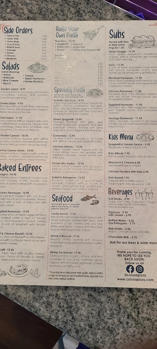 Customer favorites include the gluten-free arugula pizza, renowned for its flavors, and the creamy shrimp fettuccine Alfredo that leaves patrons raving. The warm, accommodating staff ensure that each visit is memorable, whether you're enjoying a cozy meal for two or hosting a large gathering. The ambiance, combined with authentically delicious dishes and a thoughtful selection of wines, makes Calusa a must-try destination for pizza lovers and food enthusiasts alike.